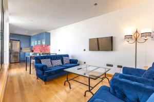 The accommodation features four bedrooms furnished with five beds in total. Inside there is a fully equipped kitchen complete with refrigerator, microwave, kitchenette facilities, coffee machine and full kitchenware for meal preparation. The two bathrooms each contain private showers or bathtubs along with bidets, other amenities include hairdryers plus body soap and shampoo supplies. Air conditioning regulates comfort throughout while seating areas offer relaxation space complemented by wardrobes or closets as well as work desks.