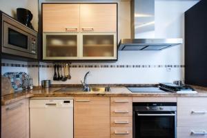 En el interior del piso hay tres dormitorios con un total de cinco camas, cocina americana completamente equipada con horno, placa vitrocerámica, lavavajillas, frigorífico y utensilios para preparar té y café que incluyen cafetera eléctrica y hervidor eléctrico. Entre las comodidades adicionales figuran televisión pantalla plana, lavadora, zona de estar, escritorio para trabajar o estudiar y armario para almacenamiento. El aire acondicionado está presente en todo el apartamento.