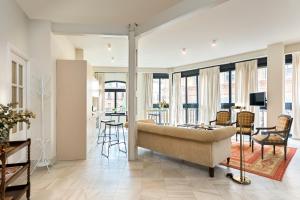 El alojamiento consta además de dos baños con ducha y secador de pelo. La cocina americana totalmente equipada dispone de horno, placa vitrocerámica, lavavajillas, nevera, microondas, tostadora, hervidor eléctrico y utensilios para comer. Entre los servicios adicionales en la habitación destacan televisión pantalla plana con servicios streaming, habitaciones insonorizadas con suelos en madera o baldosa/mármol, calefacción, prensa pantalones, armario, plancha con tabla, lavadora, escritorio para trabajar, zona sofá, cuna disponible para bebés, toallas y ropa de cama incluidas.