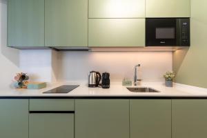 Goście mogą korzystać z bezpłatnego WiFi na terenie całego apartamentu. Do dyspozycji jest telewizor z płaskim ekranem w części wypoczynkowej wyposażonej w sofę oraz miejsce do pracy przy biurku. Dodatkowe udogodnienia to klimatyzacja we wszystkich pokojach, pralnia wraz ze sprzętami takimi jak pralka czy żelazko i deska do prasowania, suszarka na ubrania, a dzięki windzie łatwy dostęp na parter tego budynku zapewnia komfort przybycia.