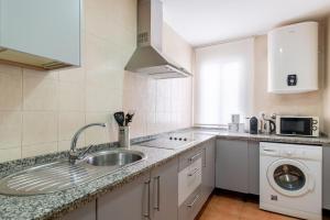 La cocina americana está totalmente equipada con horno, placa, frigorífico, lavavajillas, microondas, tostadora, cafetera y utensilios de cocina, además de una mesa para comer. Los dos baños disponen de ducha y secador de pelo.
