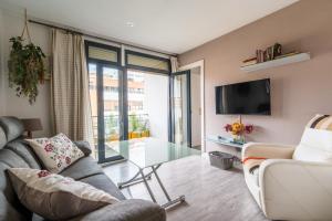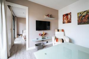 The accommodation comprises one separate bedroom along with a living room fitted with a flat-screen TV and seating area. The fully equipped kitchen features a stovetop, refrigerator, microwave, coffee machine, toaster, electric kettle, kitchenware essentials, kitchenette setup and a dining table. In addition to heating and air conditioning for comfort throughout the year, guests will find conveniences like an iron wardrobe or closet space.