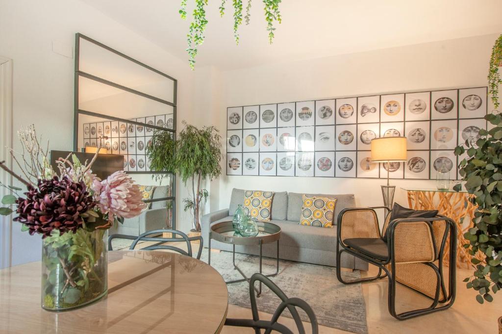 Апартаменты также находятся рядом с мостом Триана и площадью Пласа-де-Армас, а район Баррио-Санта-Крус — менее чем в километре. К таким достопримечательностям, как площадь Испании, парк Мария Луиса и Королевский Алькасар Севильи, можно легко добраться пешком или на транспорте. Аэропорт Севильи расположен в 11 км от объекта.