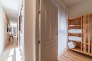 Accommodation comprises two bedrooms with three beds in total alongside one bathroom equipped with a bathtub or shower and a hairdryer. The fully equipped kitchen contains modern appliances including an oven, stovetop, refrigerator, dishwasher, microwave, coffee machine and toaster for convenience during your stay. Additional room amenities include air conditioning, ironing facilities with iron and board, a washing machine, towels, sofa bed, clothes drying rack, seating area, wardrobe or closet, baby cot or crib, sofa and flat-screen television.