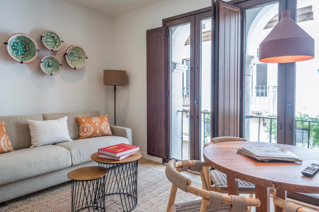 Los Patios de Feria - Jacarandas se nachází v centru Sevilly a je to nedávno zrekonstruovaný apartmán s klimatizací, bezplatným WiFi a televizí s plochou obrazovkou. Tento prostorný byt má jednu ložnici se dvěma lůžky, terasu s výhledem a přístup k celoročnímu venkovnímu bazénu.