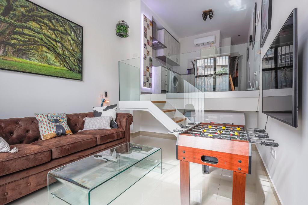 Для удобства предусмотрены стиральная машина и сушилка для одежды. Для развлечений доступен телевизор с плоским экраном со стриминговыми сервисами через бесплатный Wi-Fi на всей территории комплекса апартаментов.