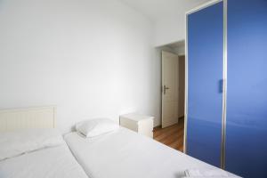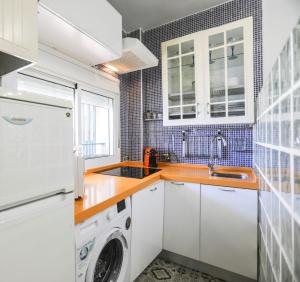 Inside the apartment are two bedrooms and one private bathroom alongside a fully equipped kitchen featuring both a kitchenette and full kitchen facilities for cooking and food storage. Additional amenities include a washing machine, flat-screen TV, air conditioning and heating to ensure a comfortable stay.