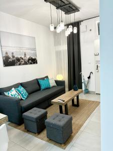 Квартира с кондиционером состоит из одной спальни и гостиной с двумя спальными местами, включая диван-кровать, во всех помещениях уложена плитка. Гости могут пользоваться полностью оборудованной мини-кухней со всеми необходимыми приборами: плитой, холодильником, посудомоечной машиной, микроволновой печью и кофемашиной, также имеются принадлежности для приготовления чая и кофе. В ванной комнате установлены душ и биде, предоставляются бесплатные туалетные принадлежности — шампунь и гель для душа.
