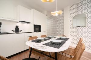 Each air-conditioned apartment features a private entrance with configurations ranging up to three bedrooms and two bathrooms equipped with showers and complimentary toiletries. Guests enjoy fully equipped kitchens or kitchenettes that include stovetops, refrigerators, dishwashers, microwaves, ovens, coffee machines and electric kettles. Rooms come furnished with beds varying in number per unit along with sofa beds, additional amenities include ironing facilities such as irons and boards, wardrobes or closets for storage, clothes drying racks as well as linens like towels and bed linen.