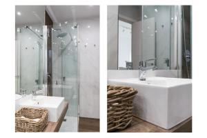 В светлом апартаменте две спальни, гостиная с телевизором с плоским экраном и зоной отдыха, а также две ванной комнаты с душем и туалетом. Полноценная кухня оснащена плитой, посудомоечной машиной, микроволновкой, тостером, кофеваркой и электрическим чайником, имеется обеденный стол для удобства гостей.