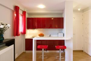 Apartmán zahrnuje jednu ložnici s jednolůžkem a obývací pokoj vybavený pohovkou a pracovním stolem. Hosté mohou využít vybavený kuchyňský kout s varnou deskou, ledničku, mikrovlnnou troubu, toustovač, kávovar, elektrickou konvici i jídelní stůl. Koupelna nabízí vanu spolu s toaletními potřebami jako tekuté mýdlo na tělo a fén na vlasy.