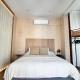 В апартаментах имеется одна спальня и одна ванная комната с ванной или душем, а также предоставляются бесплатные туалетные принадлежности: мыло для тела, шампунь, кондиционер для волос и фен. Для сна предусмотрены два кровати с синтетическими подушками без пера и постельным бельём. Жилая зона оборудована индивидуальным управлением кондиционирования воздуха для комфортного пребывания как в тёплое время года, так и отоплением в холодное время. Рабочий стол дополнен зоной отдыха с диваном и дополнительной раскладной софой.