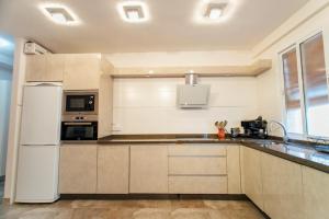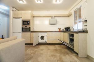 Полностью оборудованная кухня включает современные приборы: духовку, плиту, холодильник, посудомоечную машину и микроволновую печь, также есть кухонная утварь и устройства для приготовления чая и кофе. Для семей с детьми предусмотрён обеденный стол с детским стульчиком.